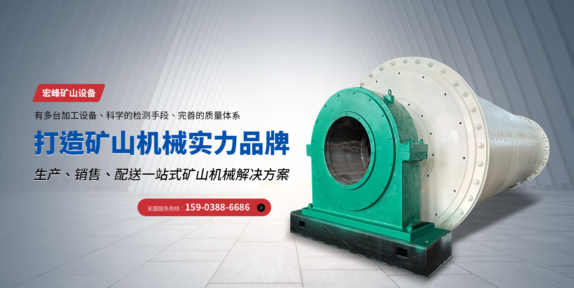新鄉市宏峰礦山設備有限公司主要產品有:球磨機、破碎機、烘干機、回轉窯、砂石生產線等,生產出來的球磨機、烘干機、回轉窯,得到客戶的良好贊譽!  宏峰礦山設備有限公司,不斷學習、不斷自我完善。有多臺加工設備、科學的檢測手段、完善的質量體系。近幾年來,企業先后從各大專院校引進了人才,現以加工、組裝為主,生產選礦、建材、水泥設備?! ”竟居袠藴驶瘡S房兩座,各種大、中型金屬加工、鉚焊、裝配設備。其中具有中、高職稱的管理干部和工程人員8名,形成了技術力量。本公司遵循對每道工序負責,對每臺產品負責,對每位用戶負責的質量方針,竭誠為用戶服務。我們可以根據礦質情況和顧客的需要設計出適合您現狀的工藝,制定適合您的工藝流程?! 」局饕a有各種大、中型破碎設備、制砂設備、選礦設備、磨粉設備等系列產品。具體產品有顎式破碎機、錘式破碎機、反擊式破碎機、復合式破碎機、沖擊式破碎機(制砂機)、對輥破碎機及破碎生產線輔助設備皮帶輸送機、振動篩、給料機等破碎設備;制砂機、皮帶輸送機、振動篩、洗沙機等制砂生產線設備;球磨機、烘干機、浮選機、磁選機、分級機、濃縮機、螺旋溜槽、高頻篩、成品篩和回轉窯等選礦生產線設備;雷蒙磨粉機、高壓微粉磨、電磁振動給料機、提升機及各種雷蒙磨配件?! ”緩S愿與海內外朋友開展交流與合作,竭誠為顧客提供產品和服務,熱誠歡迎您光臨本廠指導和洽談業務。